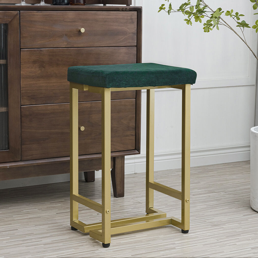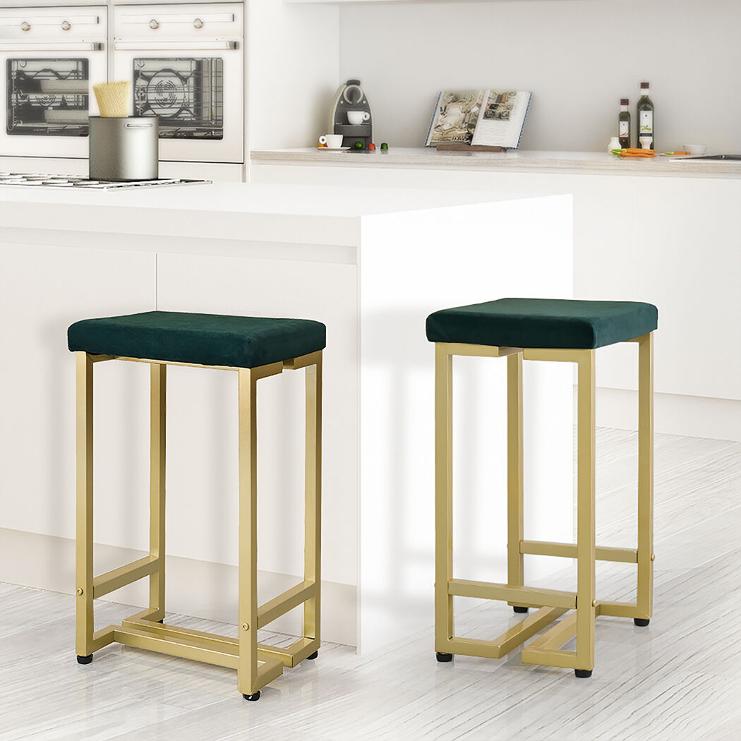 2x Bar Stools Velvet Backless