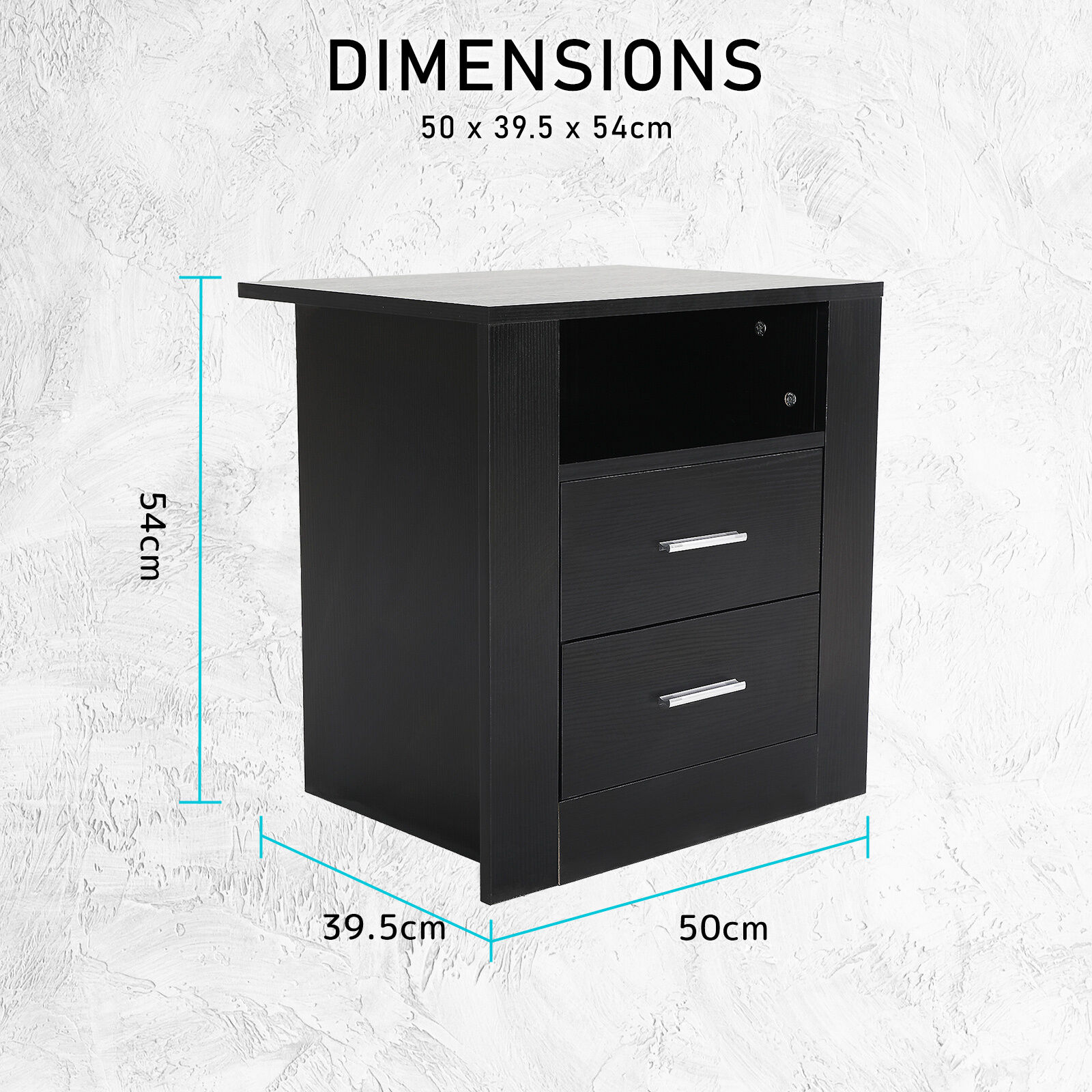 $156.97La Bella 2 Set Bedside Table Side Storage Cabinet Nightstand Bedroom 2 Drawer 1 Shelf ZURI - Black