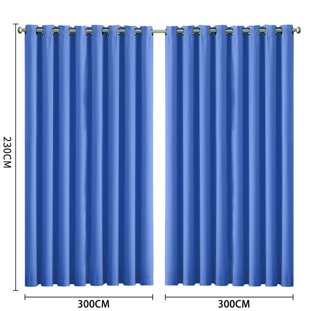 2x Blockout Curtains Panels 3 Layers Blue CD1003-300X230-GY