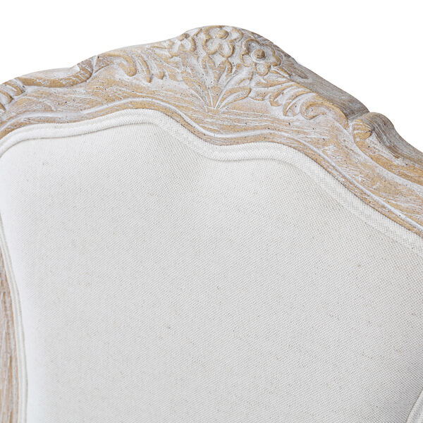 Its frame is constructed of renowned Oak wood that ensures the strength and sturdiness of the dining chair. The wooden frame has been given white washed finish on it.