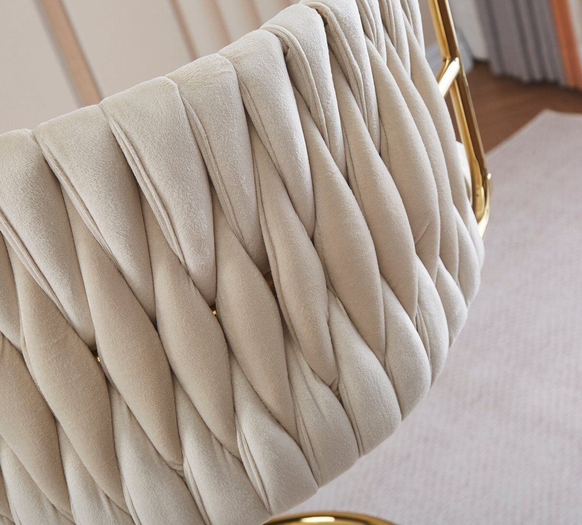 Designed to blend in with any environment, this bar stool serves the purpose of providing seating comfort along with a neat, simple design. Featuring an elegant woven seat structure and beautiful gold plated gas lift lever, it will surely complement your modern décor. It also incorporates a quality golden plated base with a velvet padded seat providing long lasting furniture that offers maximum comfort. Contemporary and innovative, it's a beauty with assured quality.