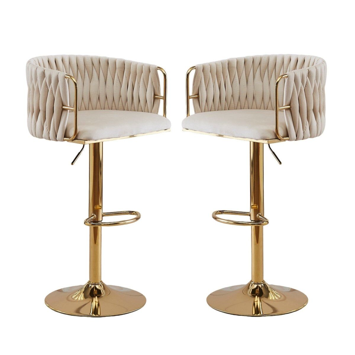 Designed to blend in with any environment, this bar stool serves the purpose of providing seating comfort along with a neat, simple design. Featuring an elegant woven seat structure and beautiful gold plated gas lift lever, it will surely complement your modern décor. It also incorporates a quality golden plated base with a velvet padded seat providing long lasting furniture that offers maximum comfort. Contemporary and innovative, it's a beauty with assured quality.