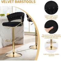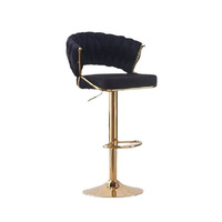 2x Height Black Velvet Padded Golden Round Base Barstools Chairs