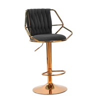 2x Height Velvet Padded Golden Round Base Barstools Chairs with Backrest and Footrest -BLACK