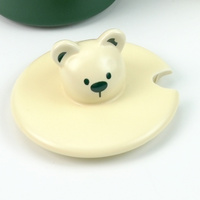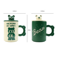 2 Set High-Fired Ceramic Porcelain Mug Set with Lid Bear Tea Spoon 400ml Green
