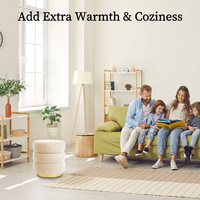 La Bella 2 Set Round Stacked Ottoman Stool Teddy Fleece Fabric Foot Rest 38cm - Beige