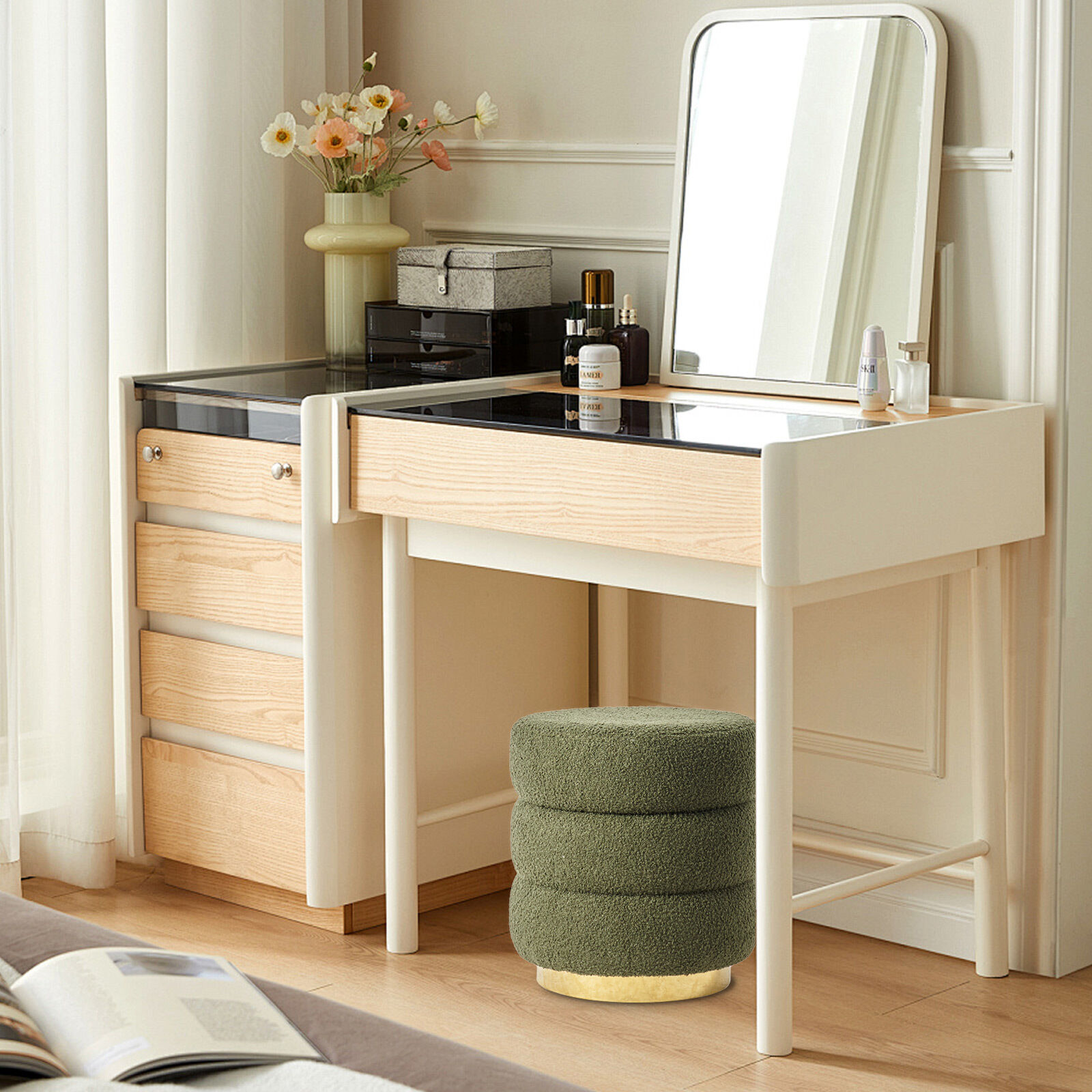 La Bella 2 Set Round Stacked Ottoman Stool Teddy Fleece Fabric Foot Rest 38cm - Green