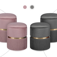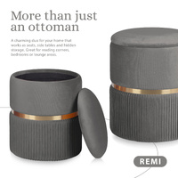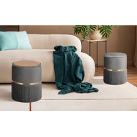 La Bella 2 Set Side Table Storage Ottoman - Velvet Padded Stool Vanity Footstool REMI - Grey