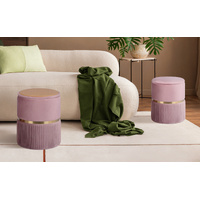 La Bella 2 Set Side Table Storage Ottoman - Velvet Padded Stool Vanity Footstool REMI - Pink