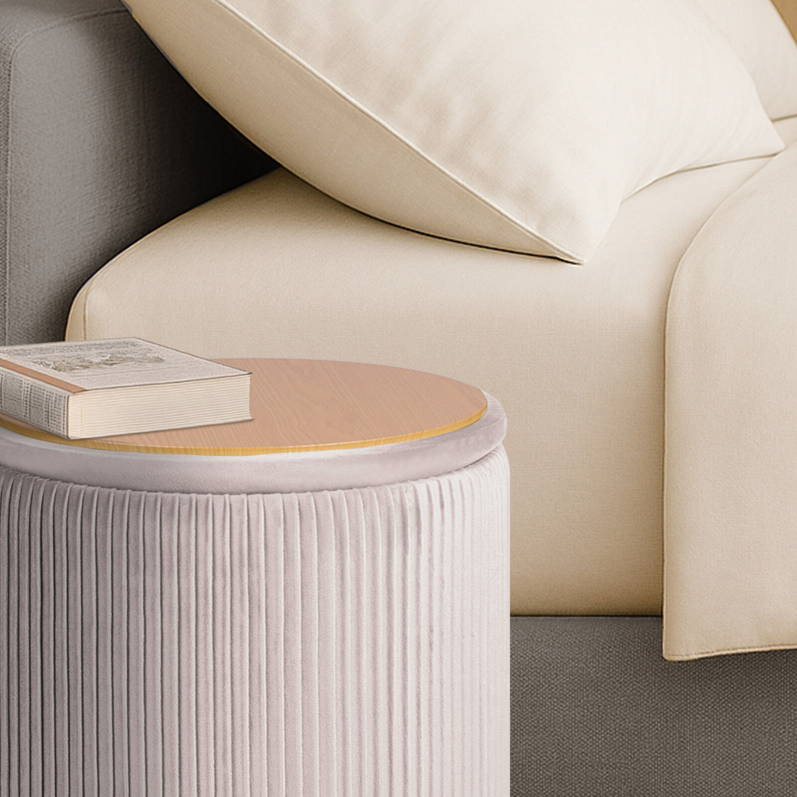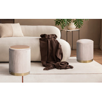 La Bella 2 Set Side Table Storage Ottoman - Velvet Stool MIRA - Cream