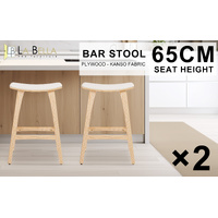 La Bella 2 Set Wooden Bar Stool 65cm KANSO Kitchen Barstools Padded Fabric Dining Chair - Beige