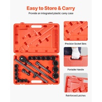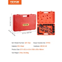 The 3/4 inches impact socket set includes a steel ratchet and a sturdy storage case for organization and transport making this a great group of sockets for mechanics