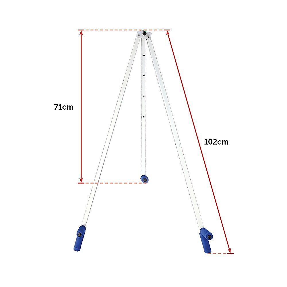 The two outer bars of the leg stretcher are 104cm in length with the central pull handle 71cm in length. The machine is adjustable to individual sizes and for varying leg lengths as your strength increases.