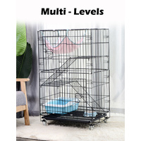 Plenty of height and width to roam and jump about. Two removable platforms and two activity ladders. And a funky hammock to top it all. Our oet Cage is indeed a home of exceptional roost for your favourite pets. Constructed with a heavy-duty metal wire frame and vein powder-coated for durability and anti-rust properties, our Pet cage is built to last with little maintenance needed. The bottom tray slides out for easy cleaning and the large access doors make feeding a breeze, while the locks help to keep your pets secured and away from prying predators. Not least, the four castor wheels enable the entire unit to be wheeled to any location hassle-free. Give your little furry friends a home that they will appreciate in their own natural instinctive way.