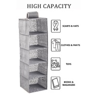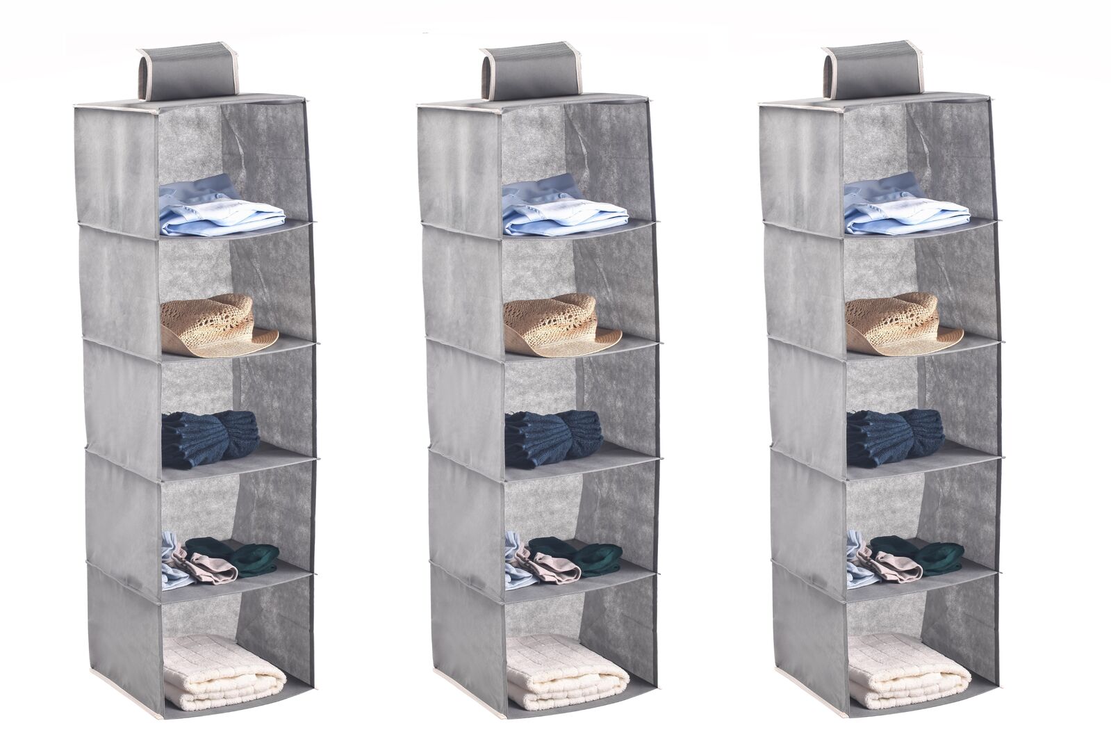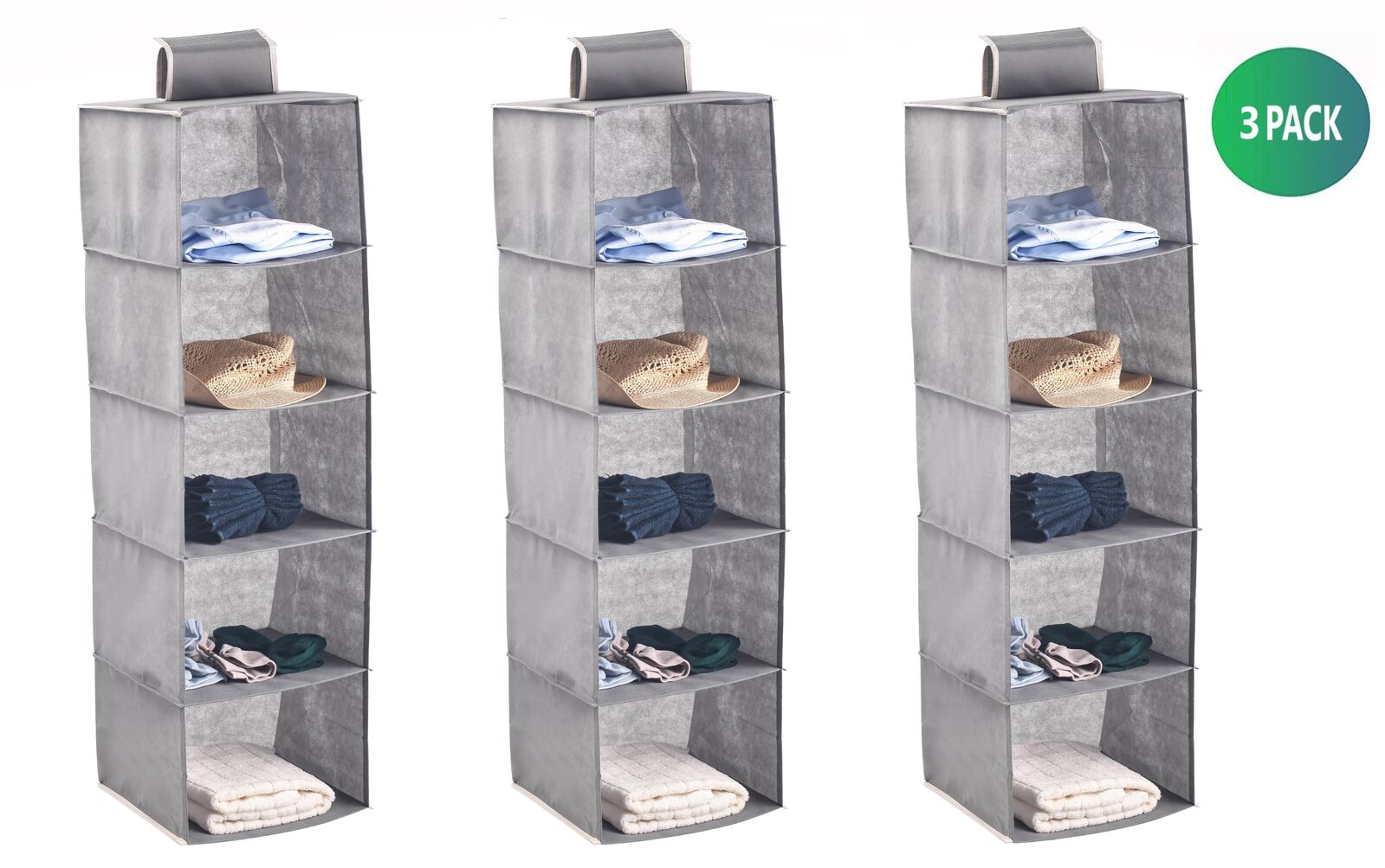 3 Pack 5-Tier Shelf Hanging Closet Organizer and Storage for Clothes (Grey)