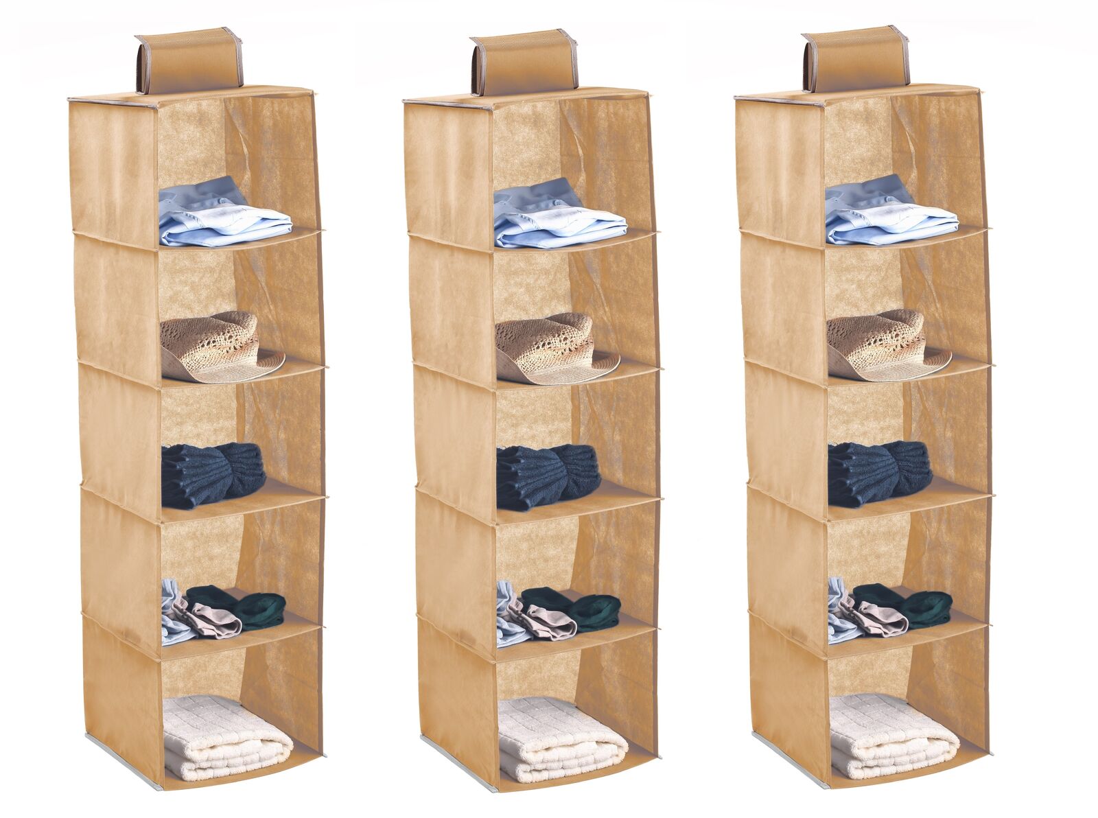3 Pack 5-Tier Shelf Hanging Closet Organizer and Storage for Clothes (Beige)