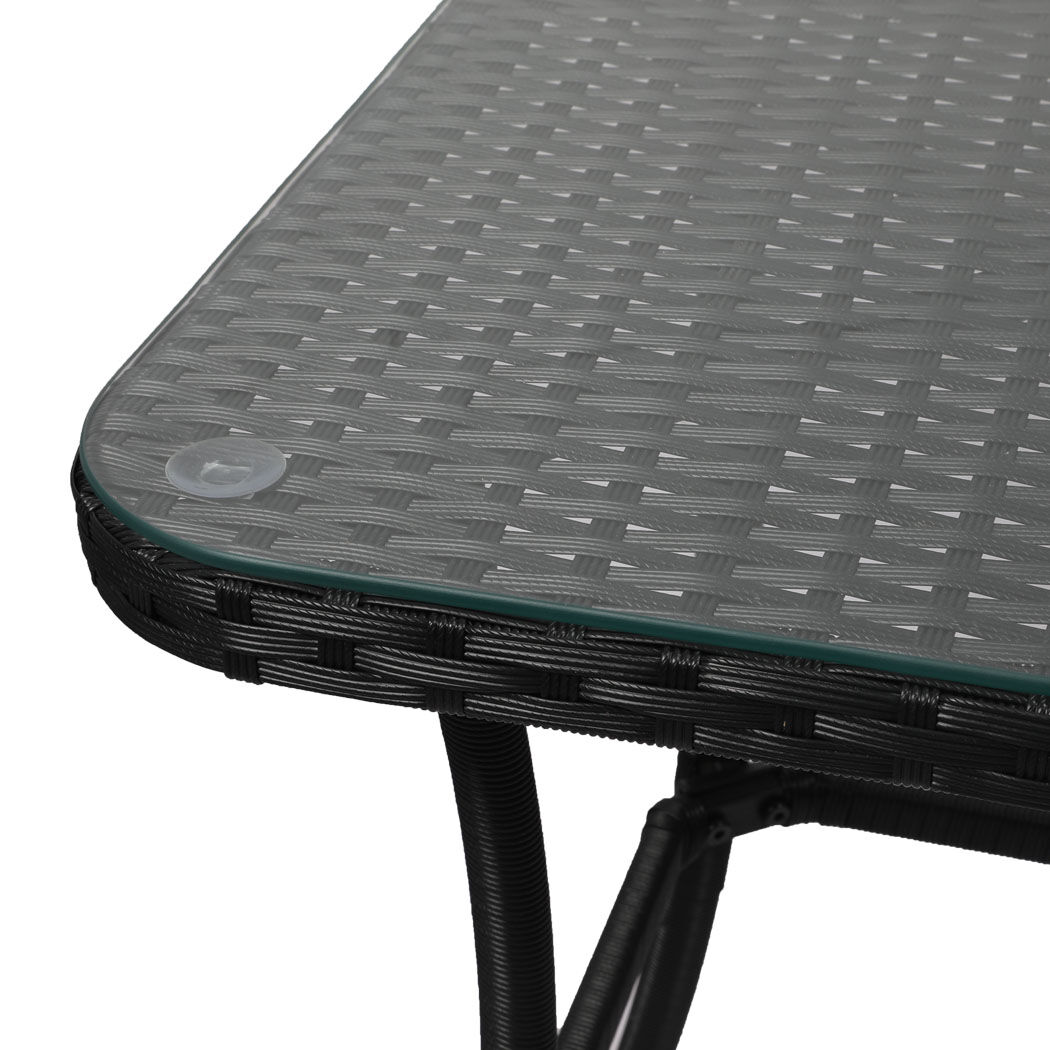 Made from premium quality PE wicker. The entire frame is made of galvanized steel highly durable and reliable. Powder-coated for extra protection designed to be weather-resistant rust-resistant and corrosion-resistant. Not easily affected by rain or blazing sun. The tabletop is designed with extra strong tempered glass can withstand pressure not easy to break. Very easy to clean and maintain with its unique built removable and washable cushion.