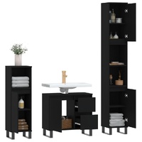 This trendy bathroom furniture set is meant to be an excellent addition to your bathroom, giving it a tidy and striking appearance! Durable material: The engineered wood is of exceptional quality with smooth surface and also features strength, stability and resistance to moisture. Iron feet: The iron feet add a modern and calm style to your interior while ensuring stability.Ample storage space: The bathroom cabinet provides various storage options and spacious space for you to store items in your bathroom. Practical design: The top of the bathroom sink cabinet is ideal for placing the sink. Warning:To prevent it being overturned, this product must be used with the provided wall attachment device. Good to know:The sink is not included in the delivery.Screws and plugs for inside the wall are not included. We advise to find and use screws and plugs suitable specifically for your walls. If you're not sure, you can consult with a professional. Please read and follow each step of the instructions.