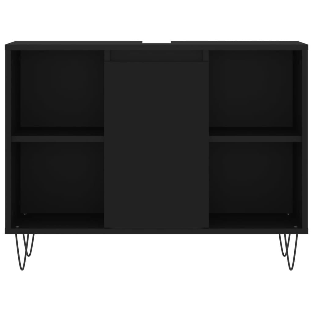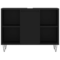 This trendy bathroom furniture set is meant to be an excellent addition to your bathroom, giving it a tidy and striking appearance! Durable material: The engineered wood is of exceptional quality with smooth surface and also features strength, stability and resistance to moisture. Iron feet: The iron feet add a modern and calm style to your interior while ensuring stability.Ample storage space: The bathroom cabinet provides various storage options and spacious space for you to store items in your bathroom. Practical design: The top of the bathroom sink cabinet is ideal for placing the sink. Warning:To prevent it being overturned, this product must be used with the provided wall attachment device. Good to know:The sink is not included in the delivery.Screws and plugs for inside the wall are not included. We advise to find and use screws and plugs suitable specifically for your walls. If you're not sure, you can consult with a professional. Please read and follow each step of the instructions.