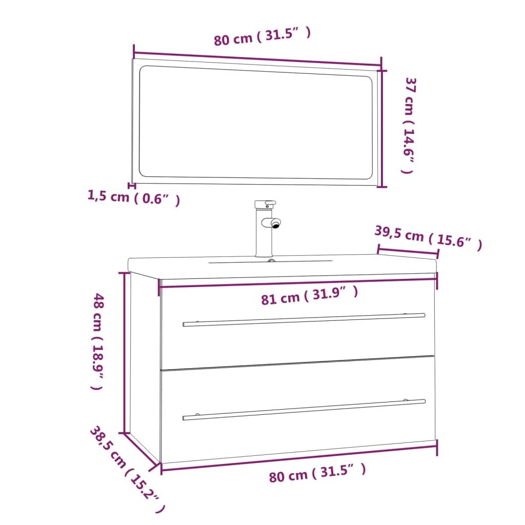 This stylish bathroom furniture set, featuring spacious storage space, is an excellent addition to your bathroom, giving it a tidy and striking appearance! Sturdy material: The under sink cabinet is made of engineered wood, that is of exceptional quality with smooth surface and also features strength, stability and resistance to moisture.Ample storage: The bathroom sink unit features a drawer, offering ample storage space to store items in your bathroom.Practical design: The top of this bathroom cabinet is ideal for placing the sink.Wall-mounted function: The bathroom cabinet and the make up mirror can be wall-mounted to add extra storage space. That way, you can maximise your floor space and keep the area clean.Overflow function: An overflow is also equipped to flow water out when it gets too full. Note:Screw(s) and plug(s) for inside the wall are not included. Seek and use screw(s) and plug(s) suitable for your walls. If you are uncertain, seek professional advice. Read and follow each step of the instruction carefully.The tap and the drain are not included in delivery.Each product comes with an assembly manual in the box for easy assembly.