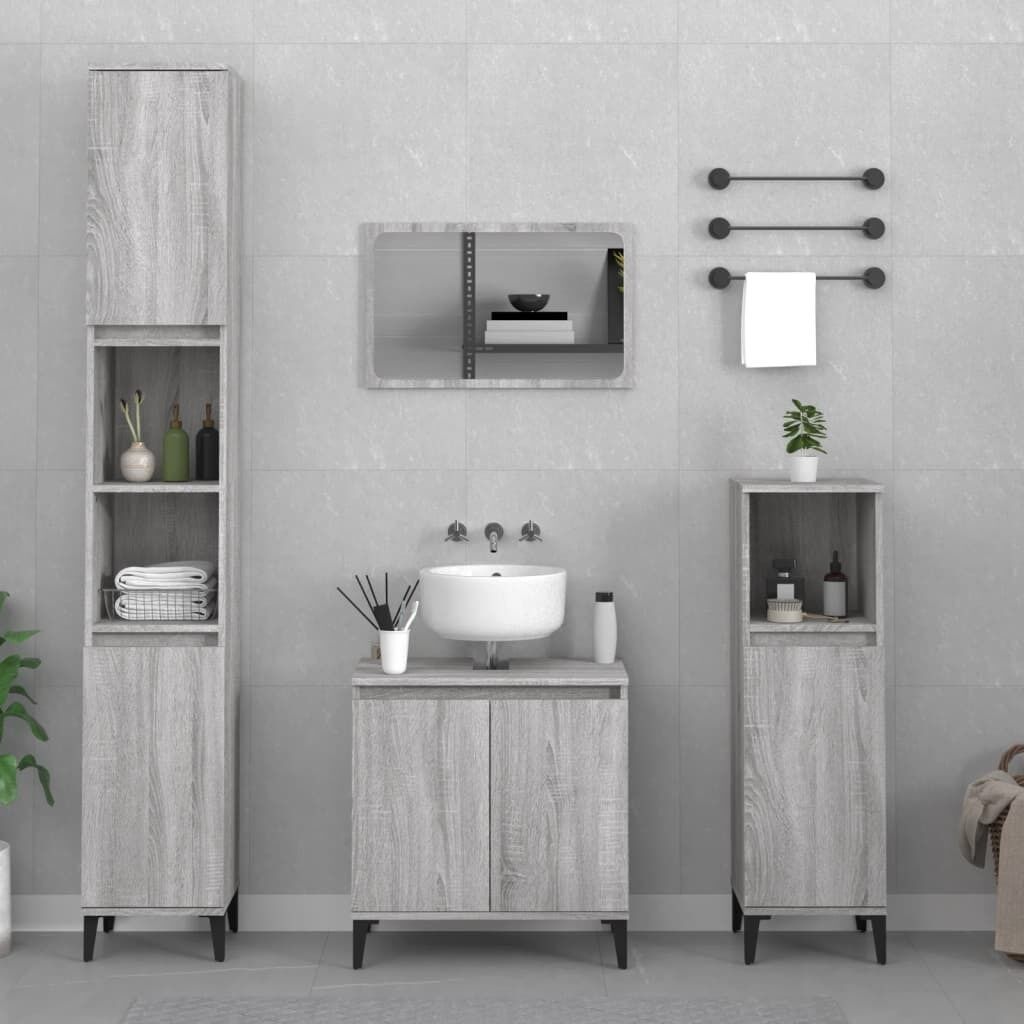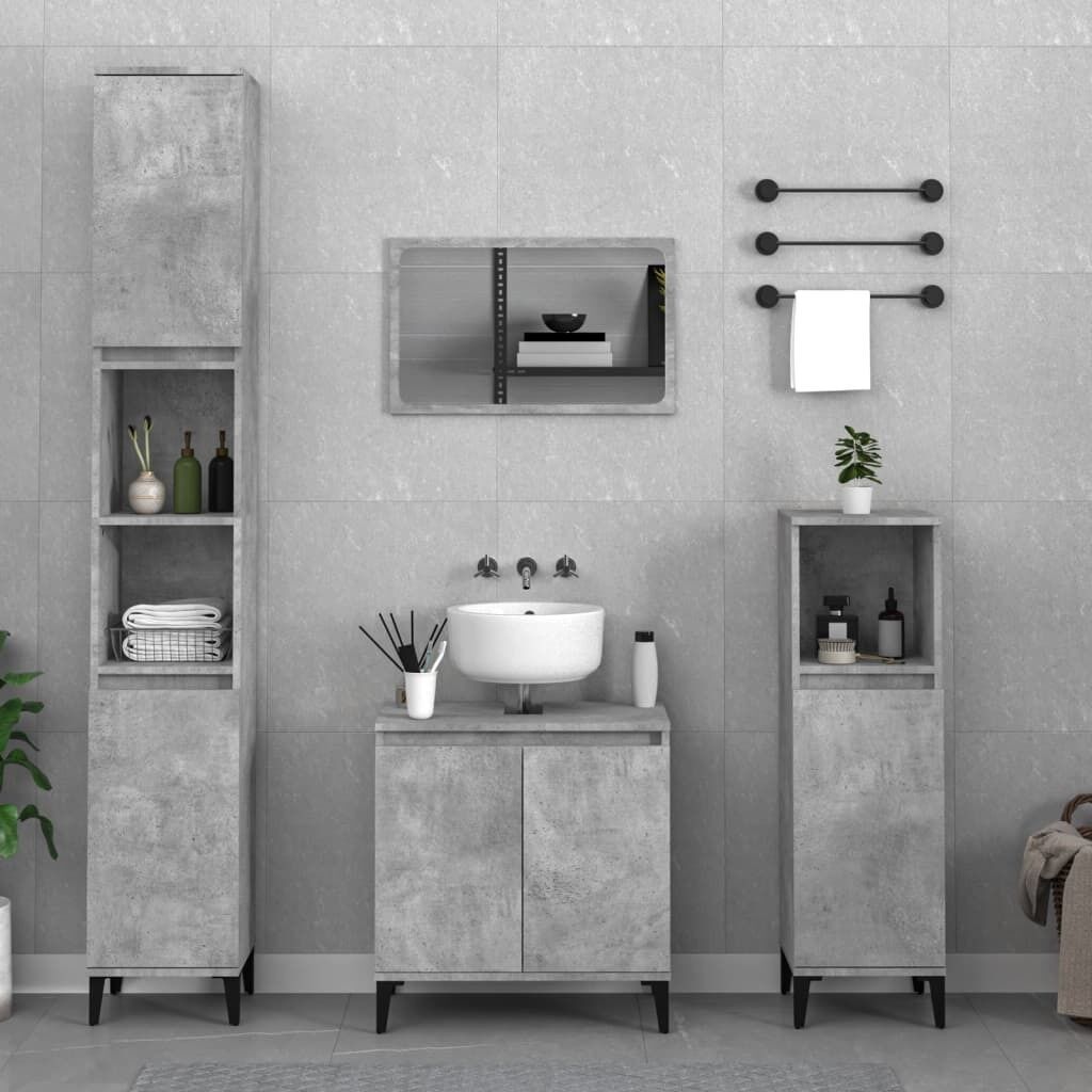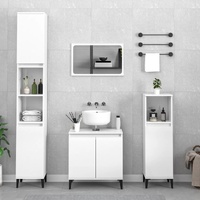 $233.09This stylish bathroom furniture set, featuring spacious storage space, is an excellent addition to your bathroom, giving it a tidy and striking appearance! Durable material: The engineered wood is of exceptional quality with a smooth surface and features strength, stability and resistance to moisture.Ample storage space: These bathroom cabinets offer ample storage space for keeping your bathroom supplies well organised.Metal feet: The metal feet add a modern and calm style to your interior while ensuring stability.Easy-to-clean surface: The bathroom unit is easy to clean with a damp cloth.Stylish design: The clean lines and sleek design blend into your bathroom perfectly. Warning:To prevent it being overturned, this product must be used with the provided wall attachment device. Good to know:Screws and plugs for inside the wall are not included. We advise to find and use screws and plugs suitable specifically for your walls. If you're not sure, you can consult with a professional. Please read and follow each step of the instructions.