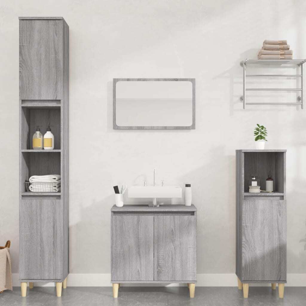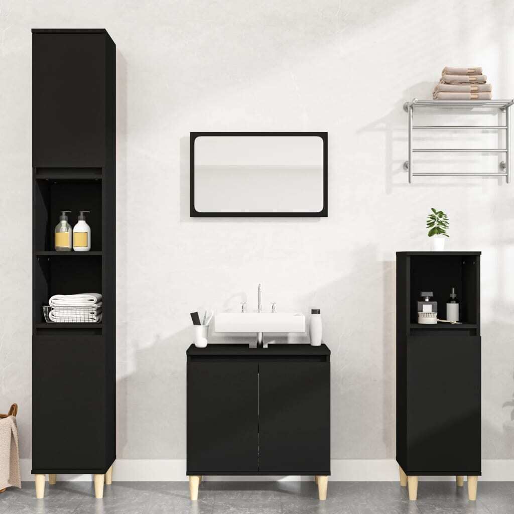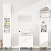 $220.49This stylish bathroom furniture set, featuring spacious storage space, is an excellent addition to your bathroom, giving it a tidy and striking appearance! Durable material: The engineered wood is of exceptional quality with a smooth surface and features strength, stability and resistance to moisture.Ample storage space: These bathroom cabinets offer ample storage space for keeping your bathroom supplies well organised.Wooden feet: The solid eucalyptus wood feet give the bathroom furniture a natural and pleasant look while ensuring stability.Easy-to-clean surface: The bathroom unit is easy to clean with a damp cloth.Stylish design: The clean lines and sleek design blend into your bathroom perfectly. Warning:To prevent it being overturned, this product must be used with the provided wall attachment device. Good to know:Screws and plugs for inside the wall are not included. We advise to find and use screws and plugs suitable specifically for your walls. If you're not sure, you can consult with a professional. Please read and follow each step of the instructions.