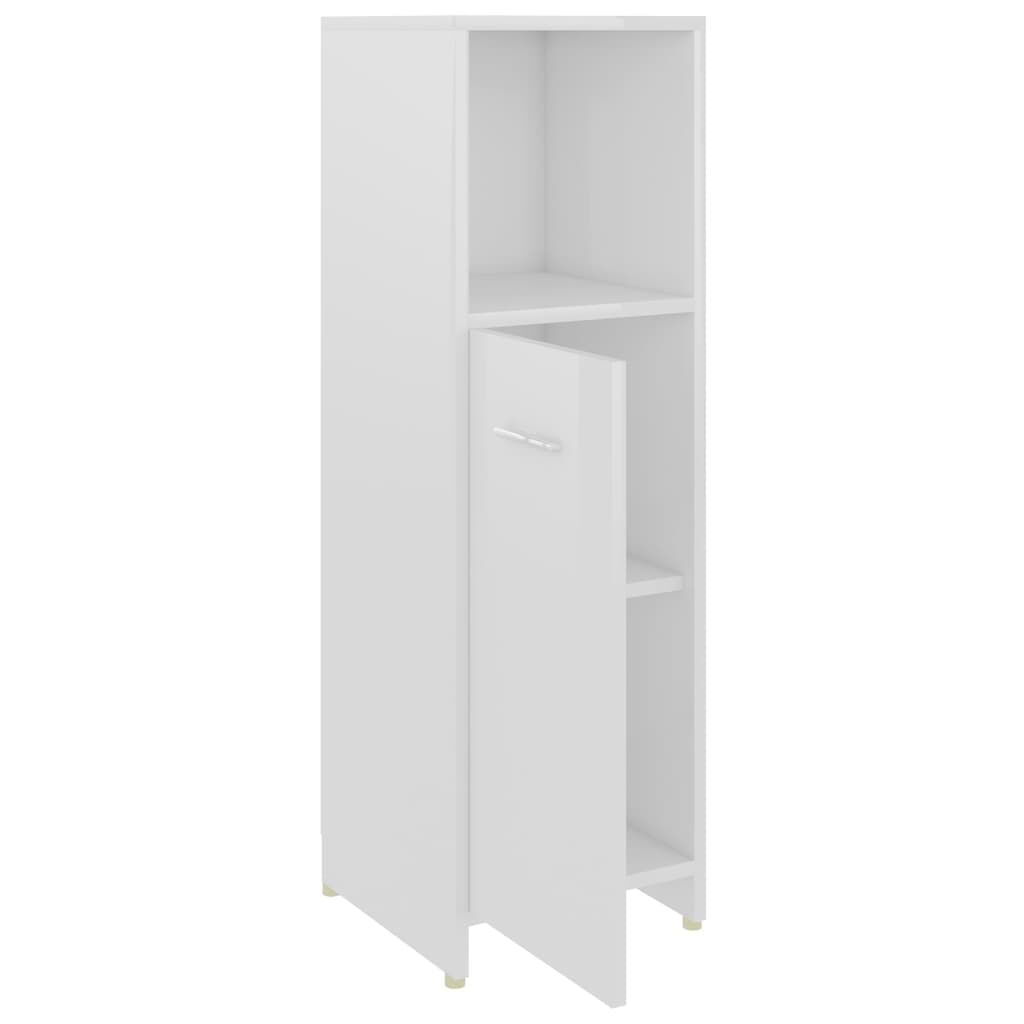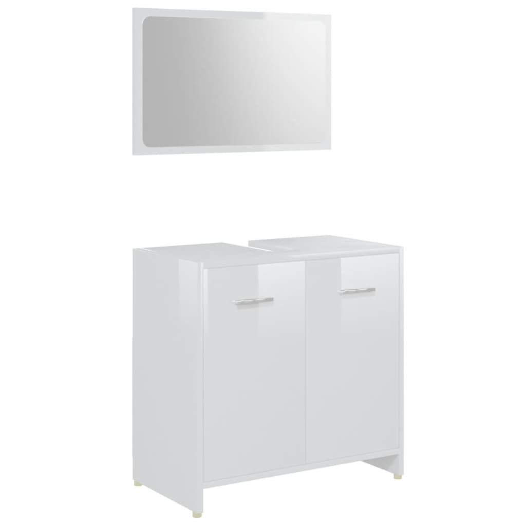This stylish bathroom furniture set, featuring 1 medium cabinet, 1 under basin cabinet and 1 mirror, creates additional storage space for your bathroom with a stunning and neat appearance. Made of premium engineered wood, this set is durable and stable. The chic medium cabinet has 3 compartments and 1 door, offering spacious space to store items in your bathroom. The basin cabinet has 1 compartment and 2 doors, providing ample space to store your toiletries, beauty products and various kinds of smaller items. You can even organise combs, cosmetics, toothbrushes and toothpaste in the shelves conveniently within reach. The mirror adds an excellent appearance to your existing home decor. Additionally, this bathroom set is easy to clean with a damp cloth.