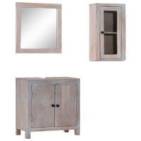 This stylish wooden bathroom furniture set is an excellent addition to your bathroom, giving it a tidy and striking appearance! Durable material: Solid acacia wood is a beautiful natural material. Acacia wood is a tropical hardwood, which is dense, sturdy, and durable.Spacious storage space: The bathroom furniture has compartments, offering spacious storage space for you to store items in your bathroom.Practical doors: Keep your space clutter-free by hiding small essentials behind the doors of this bathroom mirror cabinet.Utility mirror: The mirror is perfect for your daily beauty routine. The bathroom cabinet with mirror allows you to take care of your facial skin and wear your makeup too! Good to know:Screws and plugs for inside the wall are not included. We advise to find and use screws and plugs suitable specifically for your walls. If you're not sure, you can consult with a professional. Please read and follow each step of the instructions.Warning:To prevent it being overturned, this product must be used with the provided wall attachment device.