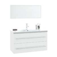 This stylish bathroom furniture set, featuring spacious storage space, is an excellent addition to your bathroom, giving it a tidy and striking appearance! Sturdy material: The under sink cabinet is made of engineered wood, that is of exceptional quality with smooth surface and also features strength, stability and resistance to moisture.Ample storage: The bathroom sink unit features a drawer, offering ample storage space to store items in your bathroom.Practical design: The top of this bathroom cabinet is ideal for placing the sink.Wall-mounted function: The bathroom cabinet and the make up mirror can be wall-mounted to add extra storage space. That way, you can maximise your floor space and keep the area clean.Overflow function: An overflow is also equipped to flow water out when it gets too full. Note:Screw(s) and plug(s) for inside the wall are not included. Seek and use screw(s) and plug(s) suitable for your walls. If you are uncertain, seek professional advice. Read and follow each step of the instruction carefully.The tap and the drain are not included in delivery.Each product comes with an assembly manual in the box for easy assembly.