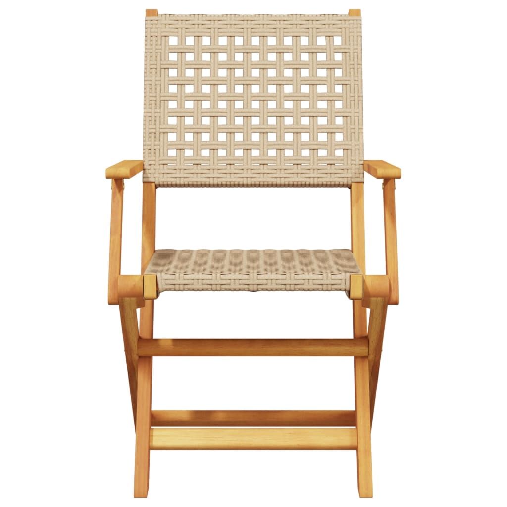 Enjoy a cup of coffee or have a chat with your family and friends in the garden, backyard, or on the balcony with this bistro set! Robust and stable: Solid acacia wood is known for its strength and durability. Its diverse colours and unique grain patterns give it an attractive appearance. With good stability and resistance to weathering, it is ideal for crafting indoor and outdoor furniture.Durable material: PE rattan, also known as poly rattan, is a strong, low-maintenance synthetic material that looks like natural rattan. It's lightweight, easy to clean, and commonly used for outdoor furniture due to its durability and weather-resistant properties.Practical design: The practical and flat wooden handrail allows you to rest your hands on it while enjoying your outdoor time.Sturdy tabletop: The outdoor table offers excellent support for holding your drinks, snacks, fruit baskets, and your favourite decorations.Foldable design: The outdoor dining table and chairs can be easily folded away when not in use, for easy storage and transportation. Good to know:To make sure your outdoor furniture stays beautiful, we recommend protecting it with a waterproof cover.