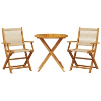 Enjoy a cup of coffee or have a chat with your family and friends in the garden, backyard, or on the balcony with this bistro set! Robust and stable: Solid acacia wood is known for its strength and durability. Its diverse colours and unique grain patterns give it an attractive appearance. With good stability and resistance to weathering, it is ideal for crafting indoor and outdoor furniture.Practical design: The practical and flat wooden handrail allows you to rest your hands on it while enjoying your outdoor time.Sturdy tabletop: The outdoor table offers excellent support for holding your drinks, snacks, fruit baskets, and your favourite decorations.Foldable design: The outdoor dining table and chairs can be easily folded away when not in use, for easy storage and transportation. Good to know:To make sure your outdoor furniture stays beautiful, we recommend protecting it with a waterproof cover.