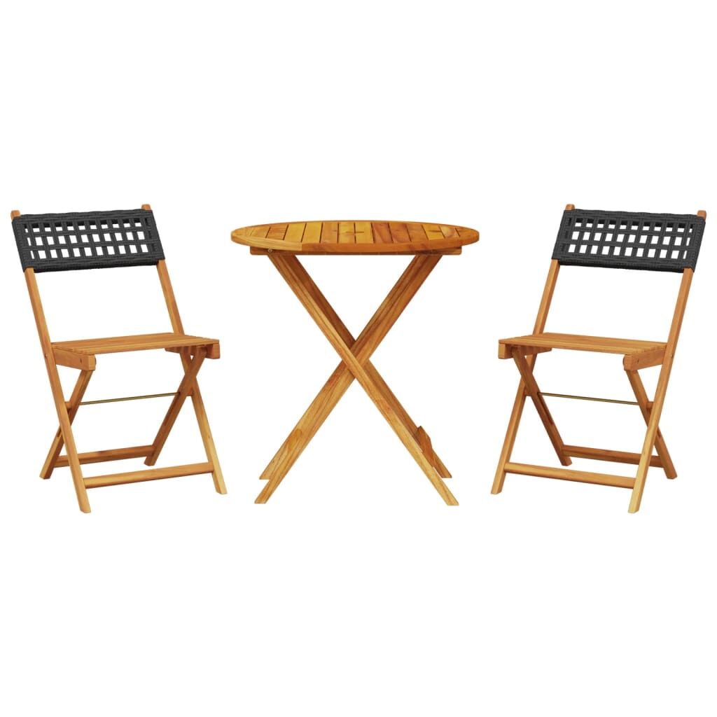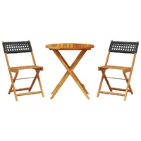 Enjoy a cup of coffee or have a chat with your family and friends in the garden, backyard, or on the balcony with this bistro set! Robust and stable: Solid acacia wood is known for its strength and durability. Its diverse colours and unique grain patterns give it an attractive appearance. With good stability and resistance to weathering, it is ideal for crafting indoor and outdoor furniture.Durable material: PE rattan, also known as poly rattan, is a strong, low-maintenance synthetic material that looks like natural rattan. It's lightweight, easy to clean, and commonly used for outdoor furniture due to its durability and weather-resistant properties.Practical design: The outdoor chair eliminates the armrest design and only comes with a backrest, allowing you to have more freedom of movement while still enjoying a comfortable experience.Sturdy tabletop: The outdoor table offers excellent support for holding your drinks, snacks, fruit baskets, and your favourite decorations.Foldable design: The outdoor dining table and chairs can be easily folded away when not in use, for easy storage and transportation. Good to know:To make sure your outdoor furniture stays beautiful, we recommend protecting it with a waterproof cover.