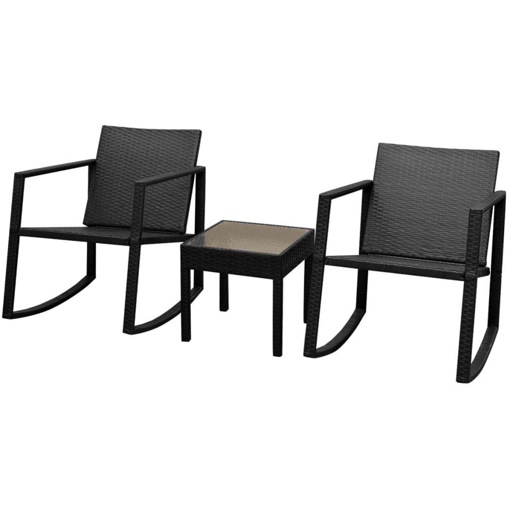 The garden furniture set is made of waterproof and weather-resistant PE rattan, which makes it easy to clean, hard-wearing and suitable for daily outdoor use. The rocking chair set features a sturdy and highly durable powder-coated steel frame. You can also keep your favourite books, magazines, drinks, or knick-knacks within reach on the sturdy table. Thanks to the lightweight structure, this rocking chair set can be easily moved around.