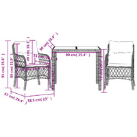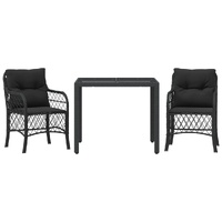 Enjoy a coffee or have a chat with your family and friends in the garden, backyard, or on the balcony with this comfortable bistro set! Durable material: PE rattan, also known as poly rattan, is a strong, low-maintenance synthetic material that looks like natural rattan. It's lightweight, easy to clean, and commonly used for outdoor furniture due to its durability and weather-resistant properties.Comfortable seat experience: This outdoor furniture set, complete with thickly padded cushions, offers a comfortable seating experience.Removable and washable cover: These seat cushions feature removable covers for easy washing and maintenance.Glass tabletop: The outdoor table's top is made from strong and durable tempered glass, making it easy to clean with a damp cloth and adding a touch of elegance to your outdoor space. Good to know:To make sure your outdoor furniture stays beautiful, we recommend protecting it with a waterproof cover.