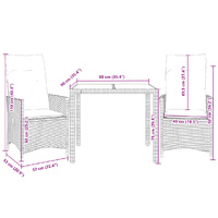 Enjoy a coffee or have a chat with your family and friends in the garden, backyard, or on the balcony with this comfortable bistro set! Durable material: PE rattan, also known as poly rattan, is a strong, low-maintenance synthetic material that looks like natural rattan. It's lightweight, easy to clean, and commonly used for outdoor furniture due to its durability and weather-resistant properties.Adjustable backrest: This garden seat has a handle. You can adjust the backrest to any position by pulling the handle, and quickly return it to its original position.Stable and easy-to-clean tabletop: This garden table has an acacia wood top that is sturdy, durable, and easy to clean with a damp cloth.Comfortable seat experience: This outdoor furniture set, complete with thickly padded cushions, offers a comfortable seating experience.Removable and washable cover: These seat cushions feature removable covers for easy washing and maintenance. Good to know:To make sure your outdoor furniture stays beautiful, we recommend protecting it with a waterproof cover.