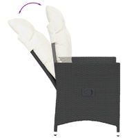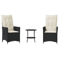 Enjoy a coffee or have a chat with your family and friends in the garden, backyard, or on the balcony with this comfortable bistro set! Durable material: PE rattan, also known as poly rattan, is a strong, low-maintenance synthetic material that looks like natural rattan. It's lightweight, easy to clean, and commonly used for outdoor furniture due to its durability and weather-resistant properties.Adjustable backrest: This garden seat has a handle. You can adjust the backrest to any position by pulling the handle, and quickly return it to its original position.Comfortable seat experience: This outdoor furniture set, complete with thickly padded cushions, offers a comfortable seating experience.Removable and washable cover: These seat cushions feature removable covers for easy washing and maintenance. The back cushions have a flap at the back for easy attachment to the backrests.Robust and stable frame: The powder-coated steel frame ensures that the garden furniture is strong and stable for daily outdoor use. Good to know:To make sure your outdoor furniture stays beautiful, we recommend protecting it with a waterproof cover.