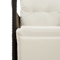 Enjoy a coffee or have a chat with your family and friends in the garden, backyard, or on the balcony with this comfortable bistro set! Durable material: PE rattan, also known as poly rattan, is a strong, low-maintenance synthetic material that looks like natural rattan. It's lightweight, easy to clean, and commonly used for outdoor furniture due to its durability and weather-resistant properties.Adjustable backrest and footrest: This garden seat has a handle. You can adjust the backrest and footrest to any position by pulling the handle. You can also quickly return the backrest and footrest to its original position with the handle.Comfortable seat experience: This outdoor furniture set, complete with thickly padded cushions, offers a comfortable seating experience.Removable and washable cover: These seat cushions feature removable covers for easy washing and maintenance. The back cushions have a flap at the back for easy attachment to the backrests.Robust and stable frame: The powder-coated steel frame ensures that the garden furniture is strong and stable for daily outdoor use. Good to know:To make sure your outdoor furniture stays beautiful, we recommend protecting it with a waterproof cover.