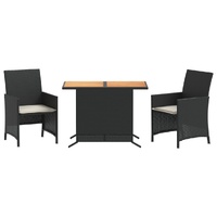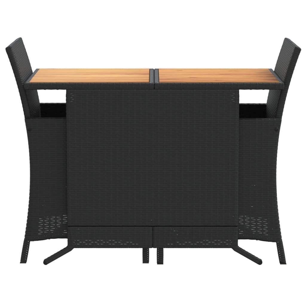 Enjoy a cup of coffee or have a chat with your family and friends in the garden, backyard, or on the balcony with this comfortable bistro set! Durable material: PE rattan, also known as poly rattan, is a strong, low-maintenance synthetic material that looks like natural rattan. It's lightweight, easy to clean, and commonly used for outdoor furniture due to its durability and weather-resistant properties.Comfortable seat experience: This outdoor furniture, complete with thickly padded cushions, offers a comfortable seating experience.Removable and washable cover: These seat cushions feature removable covers for easy washing and maintenance.Compact storage: These garden chairs can be neatly tucked underneath the table, allowing for space-saving storage.Stable and easy-to-clean tabletop: This garden table has an acacia wood top that is sturdy, durable, and easy to clean with a damp cloth. Good to know:To make sure your outdoor furniture stays beautiful, we recommend protecting it with a waterproof cover.