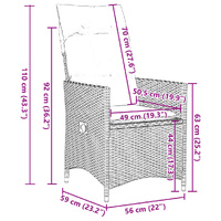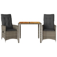 Enjoy a coffee or have a chat with your family and friends in the garden, backyard, or on the balcony with this comfortable bistro set! Durable material: PE rattan, also known as poly rattan, is a strong, low-maintenance synthetic material that looks like natural rattan. It's lightweight, easy to clean, and commonly used for outdoor furniture due to its durability and weather-resistant properties.Adjustable backrest: This garden seat has a handle. You can adjust the backrest to any position by pulling the handle, and quickly return it to its original position.Stable and easy-to-clean tabletop: This garden table has an acacia wood top that is sturdy, durable, and easy to clean with a damp cloth.Comfortable seat experience: This outdoor furniture set, complete with thickly padded cushions, offers a comfortable seating experience.Removable and washable cover: These seat cushions feature removable covers for easy washing and maintenance. The back cushions have a flap at the back for easy attachment to the backrests. Good to know:To make sure your outdoor furniture stays beautiful, we recommend protecting it with a waterproof cover.