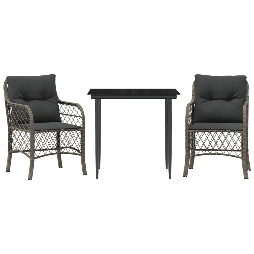 Enjoy a coffee or have a chat with your family and friends in the garden, backyard, or on the balcony with this comfortable bistro set! Durable material: PE rattan, also known as poly rattan, is a strong, low-maintenance synthetic material that looks like natural rattan. It's lightweight, easy to clean, and commonly used for outdoor furniture due to its durability and weather-resistant properties.Comfortable seat experience: This outdoor furniture set, complete with thickly padded cushions, offers a comfortable seating experience.Removable and washable cover: These seat cushions feature removable covers for easy washing and maintenance.Glass tabletop: The outdoor table's top is made from strong and durable tempered glass, making it easy to clean with a damp cloth and adding a touch of elegance to your outdoor space. Good to know:To make sure your outdoor furniture stays beautiful, we recommend protecting it with a waterproof cover.