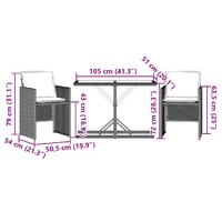 Enjoy a cup of coffee or have a chat with your family and friends in the garden, backyard, or on the balcony with this comfortable bistro set! Durable material: PE rattan, also known as poly rattan, is a strong, low-maintenance synthetic material that looks like natural rattan. It's lightweight, easy to clean, and commonly used for outdoor furniture due to its durability and weather-resistant properties.Compact storage: These chairs have a flap backrest that can be folded down for compact storage.Comfortable seat experience: This outdoor furniture, complete with thickly padded cushions, offers a comfortable seating experience.Removable and washable cover: These seat cushions feature removable covers for easy washing and maintenance. The chair cushion covers have a flap at the back for easy attachment to the chairs.Glass tabletop: The outdoor table's top is made from strong and durable tempered glass, making it easy to clean with a damp cloth and adding a touch of elegance to your outdoor space. Good to know:To make sure your outdoor furniture stays beautiful, we recommend protecting it with a waterproof cover.