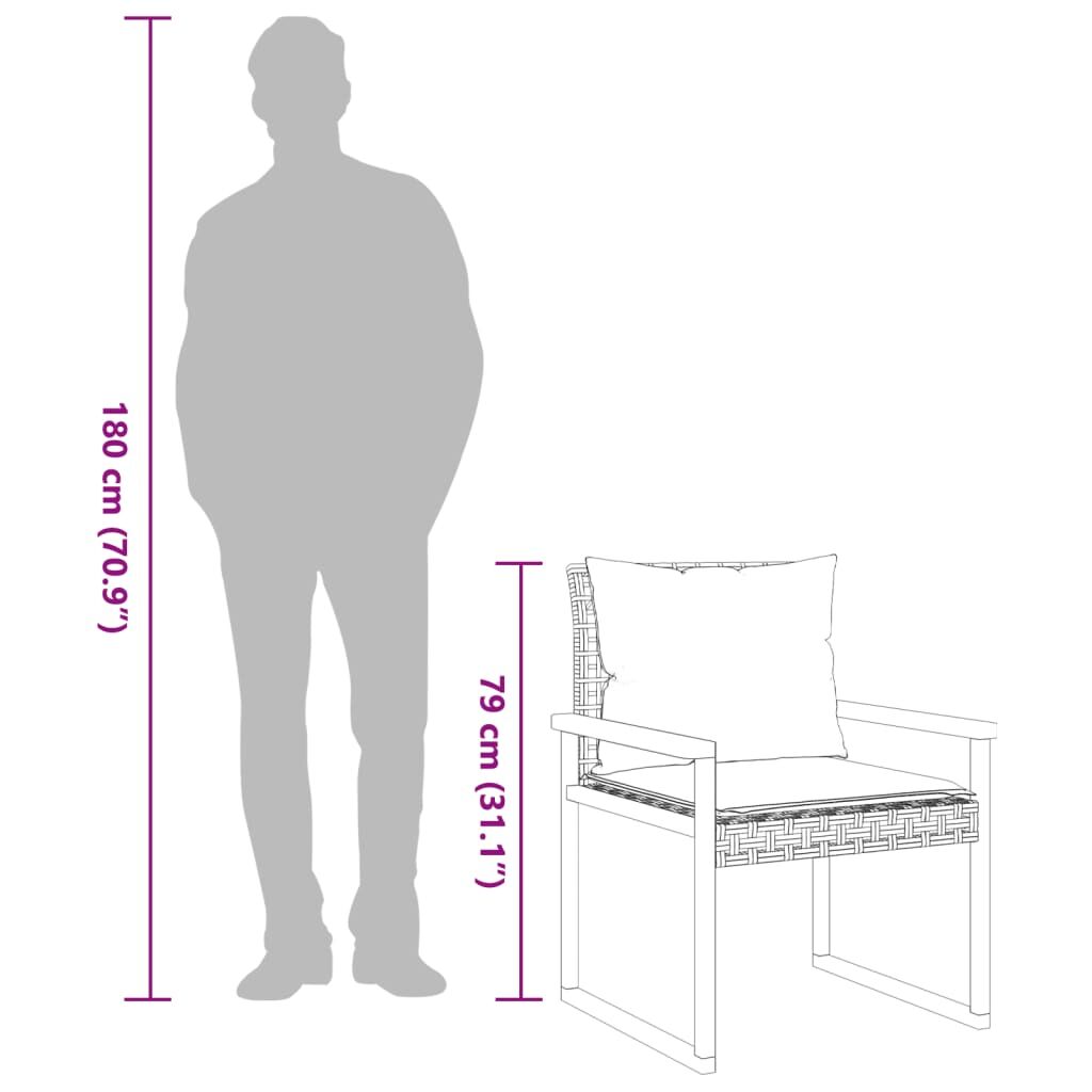 Enjoy a coffee or have a chat with your family and friends in the garden, backyard, or on the balcony with this comfortable bistro set! Durable material: PE rattan, also known as poly rattan, is a strong, low-maintenance synthetic material that looks like natural rattan. It's lightweight, easy to clean, and commonly used for outdoor furniture due to its durability and weather-resistant properties.Comfortable seat experience: This outdoor furniture, complete with thickly padded cushions, offers a comfortable seating experience.Removable and washable cover: These seat cushions feature removable covers for easy washing and maintenance.Stable and easy-to-clean tabletop: This garden table has an acacia wood top that is sturdy, durable, and easy to clean with a damp cloth.Robust and stable frame: The powder-coated steel frame ensures the garden furniture is strong and stable for daily outdoor use. Good to know:To make sure your outdoor furniture stays beautiful, we recommend protecting it with a waterproof cover.