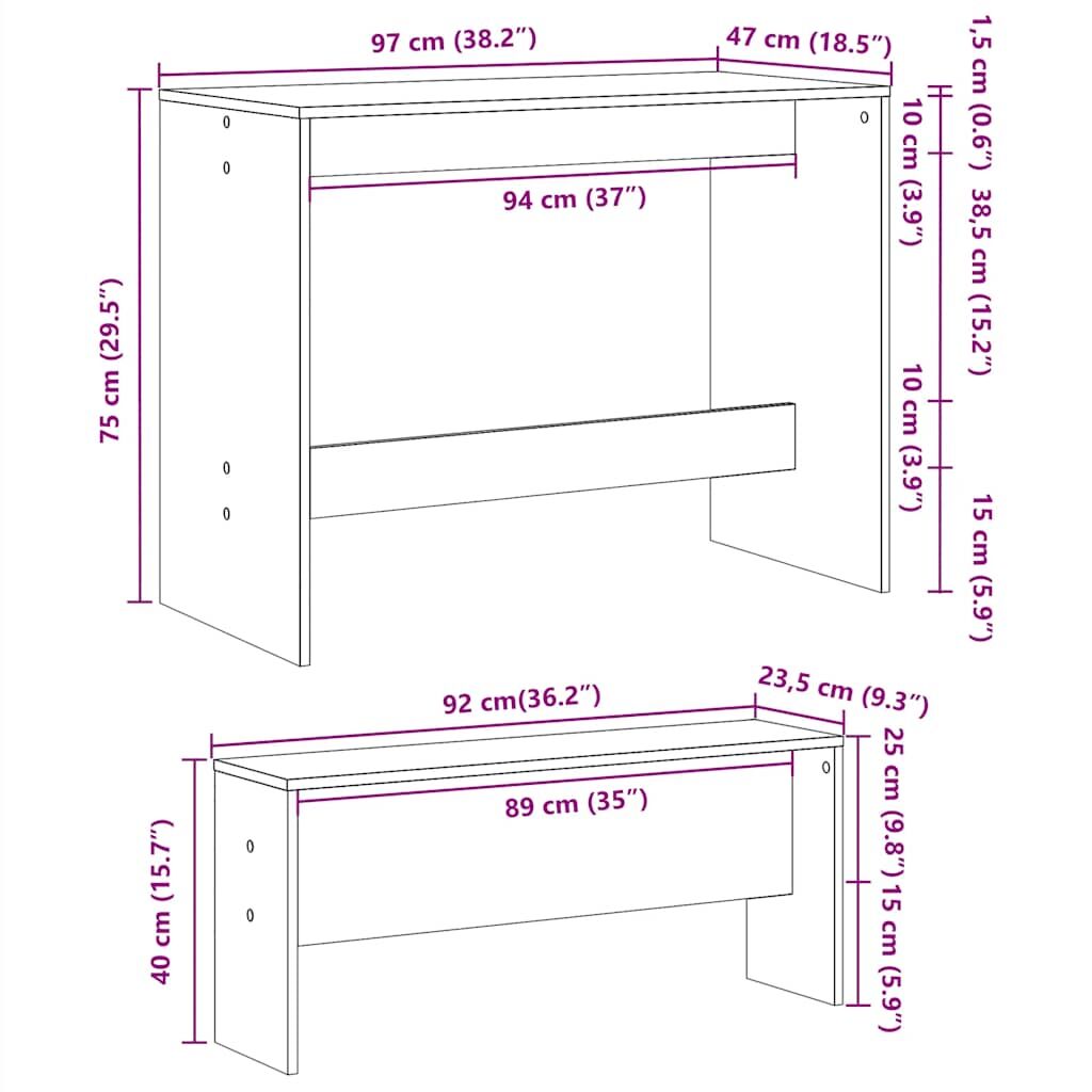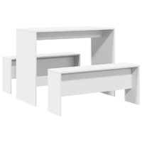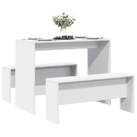 Create a warm and inviting place to start the day or enjoy a great meal with this dining table and bench set! Stable and durable material: Engineered wood is a durable and stable material with a smooth surface that is resistant to moisture, warping, and splitting, making it a reliable choice for a variety of projects.Sturdy tabletop: This dining table features a robust tabletop, making it ideal for serving meals, snacks, drinks, and showcasing your favourite decorations.Generous seating: Thanks to the generous bench seating, this dining set is perfect for gathering family and friends for a delightful feast.Easy maintenance: Thanks to its smooth surface, the dining set is easy to clean with a damp cloth and requires less maintenance. Warning:To prevent it from tipping over, this product must be used with the provided wall attachment device.