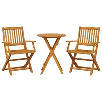 This folding bistro set is a great choice for al fresco dining or just relaxing in the garden, backyard, or patio. Solid acacia wood: Solid acacia wood is a beautiful natural material. Acacia wood is a tropical hardwood, which is dense, sturdy, and durable.Foldable function: The garden bistro set can be folded away to save space when not in use.Ventilated: This outdoor bistro set with a slat design can allow water flow, which is not easy to rot and has a long service life.Stable top: The stable top of the bistro table is ideal for placing your drink or any other necessity you need close at hand.Easy-to-clean surface: The oil-finished surface makes this garden furniture set easy to clean with a damp cloth. Good to know:To make sure your outdoor furniture stays beautiful, we recommend protecting it with a waterproof cover.