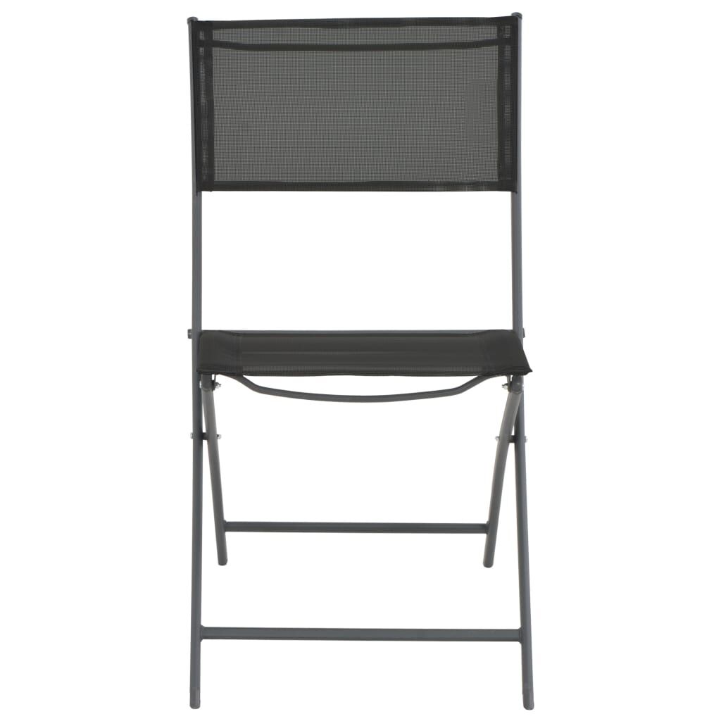This folding bistro set will add a touch of industrial style to your patio, garden or dining room. With sturdy, powder-coated steel frames, the garden bistro set is stable, durable and weather resistant. The tabletop is made of tempered glass which is safer and stronger than normal glass. What makes the chairs more comfortable is the Textilene fabric, which is hardwearing and weather resistant. The garden bistro set is easy to clean and maintain. When not in use, the outdoor table and chairs can be easily folded away to save space. Note: In order to extend the life of your outdoor furniture, we recommend you to clean it regularly and do not leave it outdoors without protection unnecessarily.Clean: Use a mild soap solution.Storing: If possible, store in a cool, dry place indoors. If the product is stored outdoors, protect it with a waterproof cover. Wipe and dry the excess water or snow from flat surfaces after a rain or snowfall. Allow sufficient air circulation to avoid moisture-related damage.