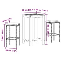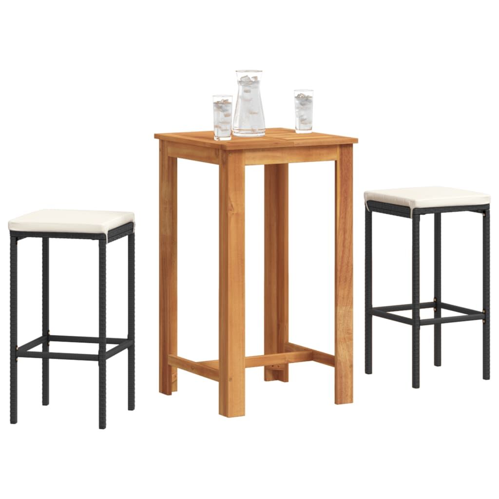 This garden bar set with an elegant and contemporary design will be a great choice for dining or relaxing in the garden. Durable material: PE rattan, also known as poly rattan, is a strong, low-maintenance synthetic material that looks like natural rattan. It's lightweight, easy to clean, and commonly used for outdoor furniture due to its durability and weather-resistant properties. Made of lightweight PE rattan, these bar stools are sturdy and easy to move. Sturdy tabletop: Solid acacia wood is a beautiful natural material. Acacia wood is a tropical hardwood, which is dense, sturdy, and durable. Made of solid acacia wood, this bar table is sturdy and stable. You can place your snacks, drinks and any of your favourite decorations. Comfortable seating experience: The thickly padded seat cushions and the built-in footrests add additional seating comfort for the stool. Removable and washable cover: These seat cushions feature removable covers for easy washing and maintenance. Good to know:To make sure your outdoor furniture stays beautiful, we recommend protecting it with a waterproof cover.