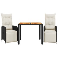 Enjoy a coffee or have a chat with your family and friends in the garden, backyard, or on the balcony with this comfortable bistro set! Durable material: PE rattan, also known as poly rattan, is a strong, low-maintenance synthetic material that looks like natural rattan. It's lightweight, easy to clean, and commonly used for outdoor furniture due to its durability and weather-resistant properties.Adjustable backrest and footrest: This garden seat has a handle. You can adjust the backrest and footrest to any position by pulling the handle, and quickly return it to its original position.Comfortable seat experience: This outdoor furniture, complete with thickly padded cushions, offers a comfortable seating experience.Removable and washable cover: These seat cushions feature removable covers for easy washing and maintenance. The back cushions have a flap at the back for easy attachment to the backrests.Stable and easy-to-clean tabletop: This garden table has an acacia wood top that is sturdy, durable, and easy to clean with a damp cloth. Good to know:To make sure your outdoor furniture stays beautiful, we recommend protecting it with a waterproof cover.