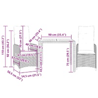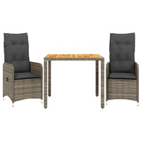 Enjoy a coffee or have a chat with your family and friends in the garden, backyard, or on the balcony with this comfortable bistro set! Durable material: PE rattan, also known as poly rattan, is a strong, low-maintenance synthetic material that looks like natural rattan. It's lightweight, easy to clean, and commonly used for outdoor furniture due to its durability and weather-resistant properties.Adjustable backrest: This garden seat has a handle. You can adjust the backrest to any position by pulling the handle, and quickly return it to its original position.Comfortable seat experience: This outdoor furniture, complete with thickly padded cushions, offers a comfortable seating experience.Removable and washable cover: These seat cushions feature removable covers for easy washing and maintenance. The back cushions have a flap at the back for easy attachment to the backrests.Stable and easy-to-clean tabletop: This garden table has an acacia wood top that is sturdy, durable, and easy to clean with a damp cloth. Good to know:To make sure your outdoor furniture stays beautiful, we recommend protecting it with a waterproof cover.
