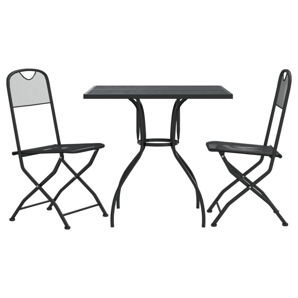 Enjoy a nice meal or afternoon tea in your outdoor space with this garden dining set! Featuring an elegant design, it will become the focal point of your garden and patio! Sturdy frame: The metal frame makes this garden furniture set sturdy and durable, providing a lifelong service.Mesh design: This dining set, with the mesh design, can effectively avoid water accumulation, adding a stylish appearance to your outdoor living space.Practical tabletop: The sturdy tabletop of the garden dining table is perfect for placing meals, drinks, and other decorative items.Easy movement: These garden dining chairs are foldable to save space when not in use. You can easily carry them with you anywhere on your outdoor trips. Good to know:To make sure your outdoor furniture stays beautiful, we recommend protecting it with a waterproof cover.