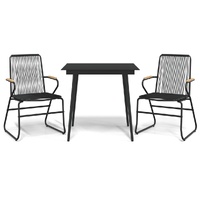 Enjoy a cosy coffee time in your outdoor space with this garden dining set! This dining set is a perfect addition to your garden and terrace, creating a lasting impression! Durable PVC rattan: PVC rattan is a sturdier and more durable option for natural rattan. PVC is known for its weather-resistant qualities like protection from UV rays and resistance to moisture.Sturdy frame: The steel frame of the garden dining set ensures sturdiness and stability.Sturdy tabletop: The sturdy tabletop of the dinner table is perfect for placing meals, drinks, vases, fruit bowls, or other decorative items.Comfortable seat experience: With a backrest and armrests, the garden seating allows you to sit back comfortably after a long day. Note:To make sure your outdoor furniture stays beautiful, we recommend protecting it with a waterproof cover.